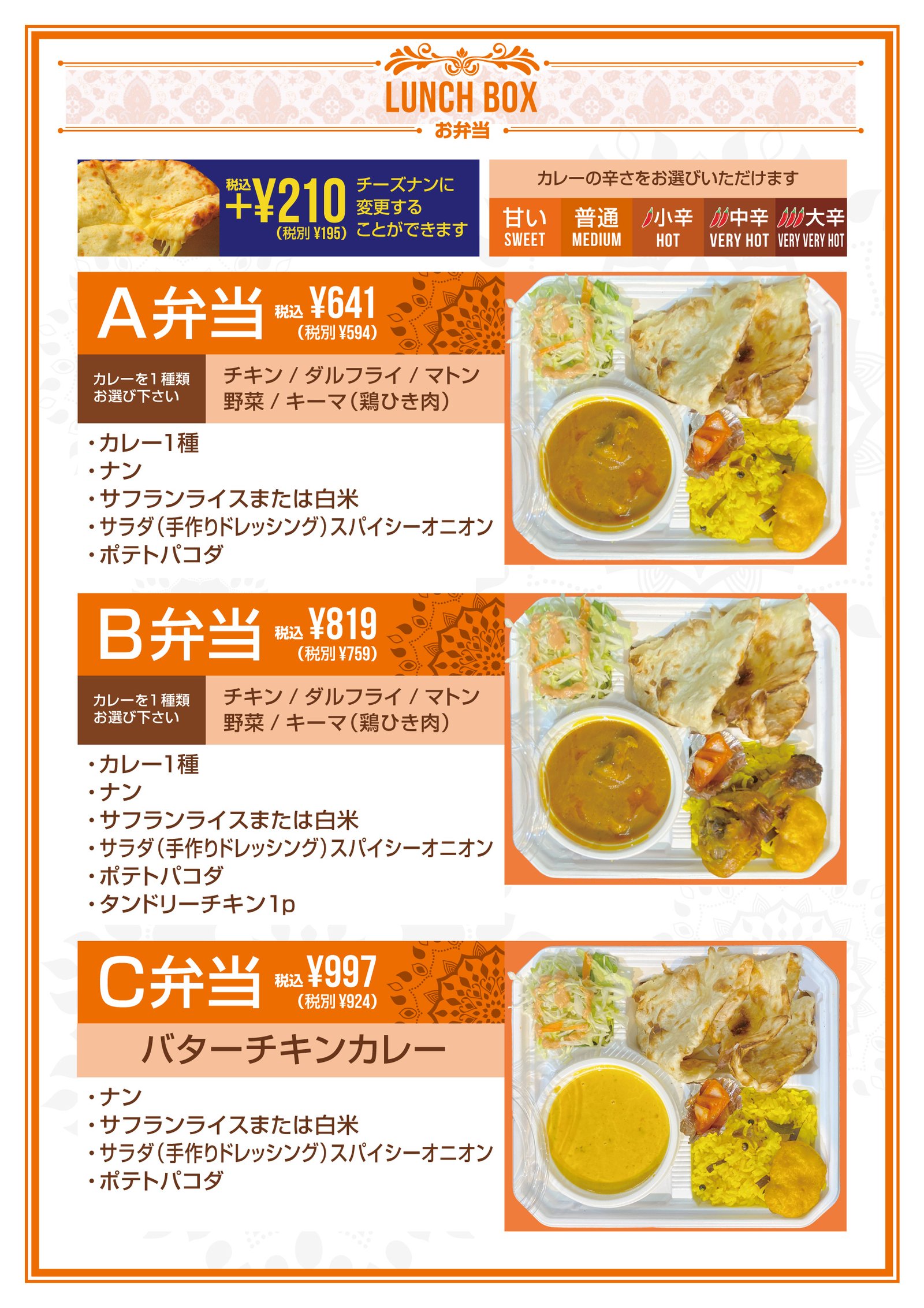 リーズナブルなお値段で本格的なカレーがお持ち帰りいただけます。
